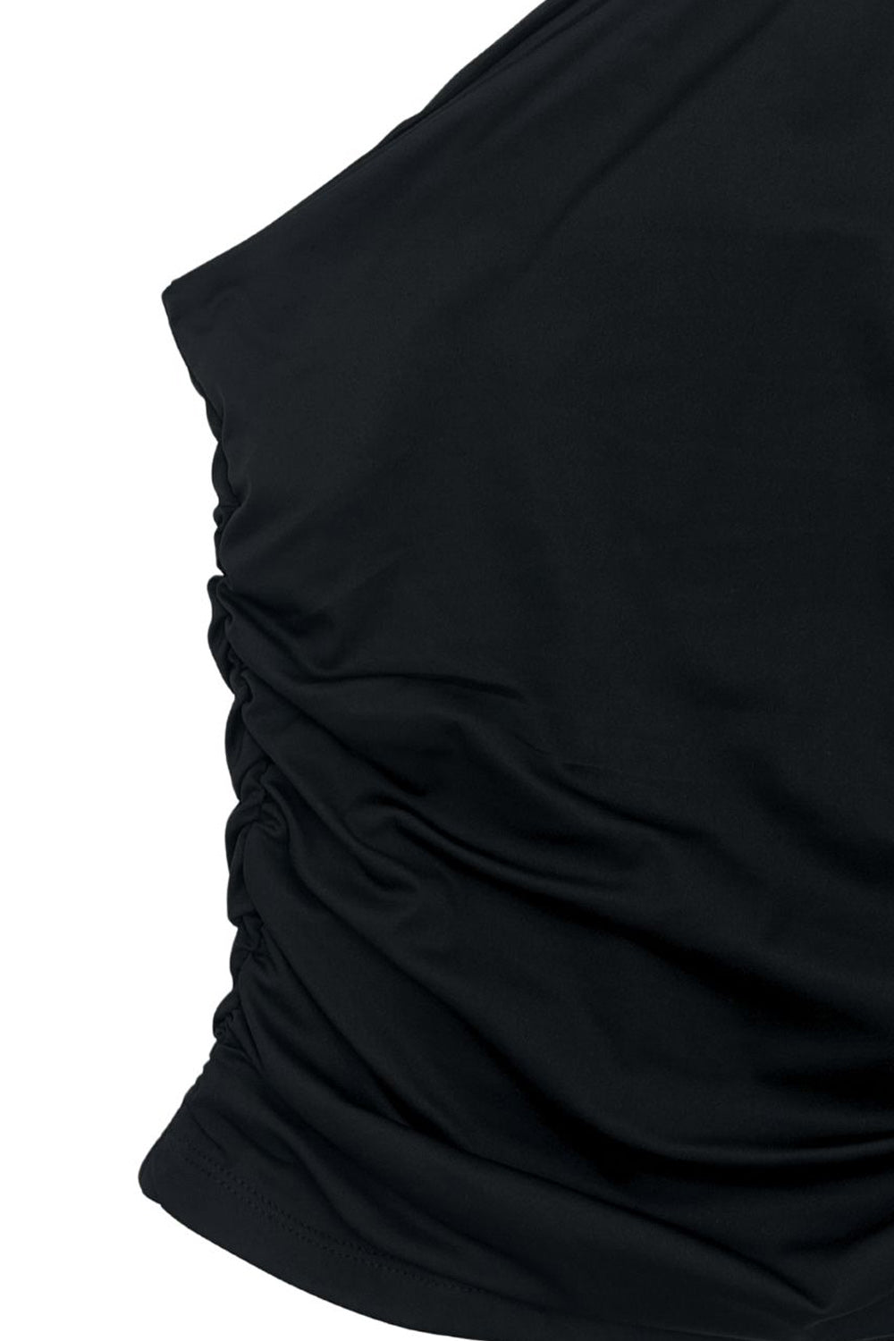 Top asimétrico de fit ajustado, sin mangas y escote diagonal con detalle de choker cruzado.