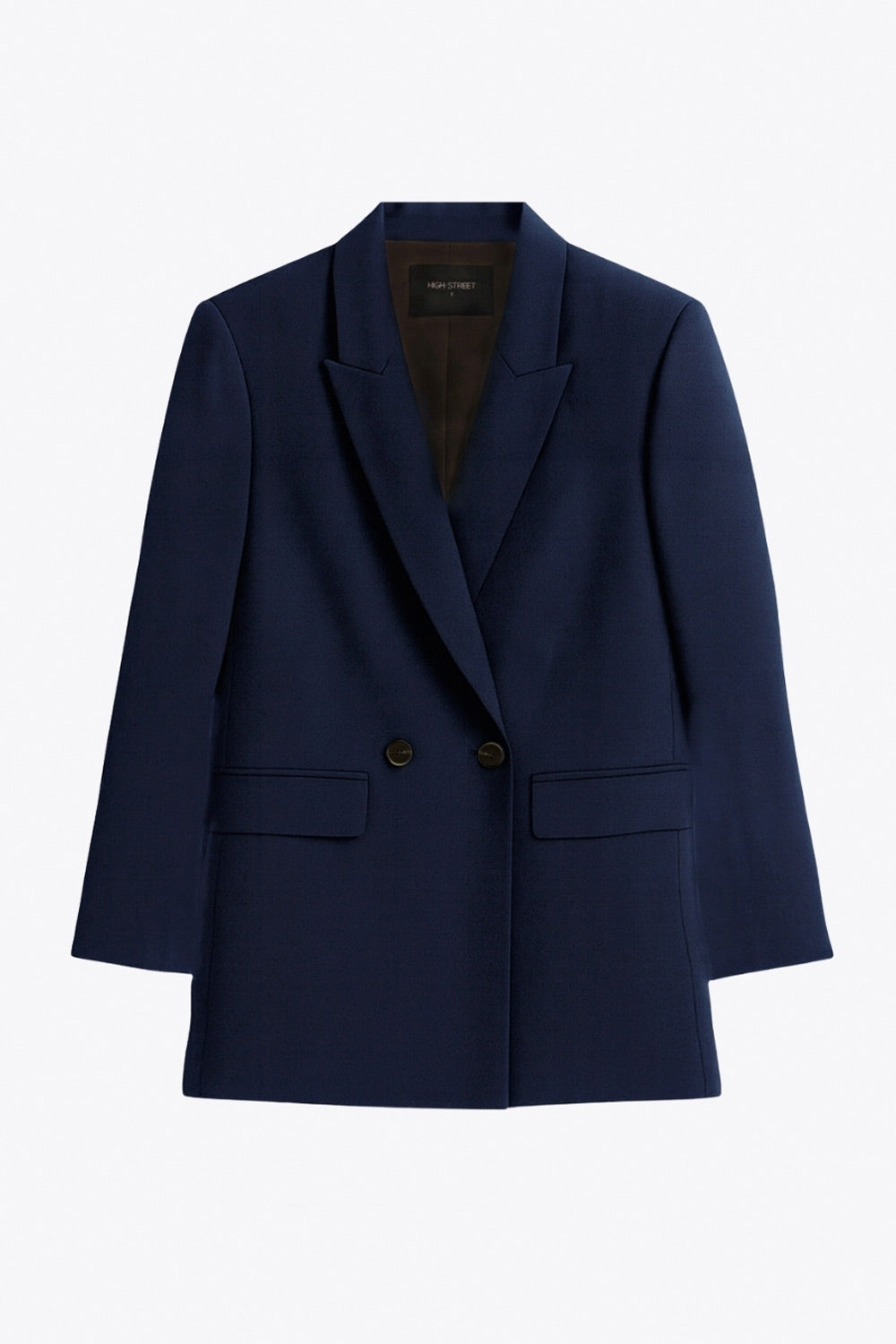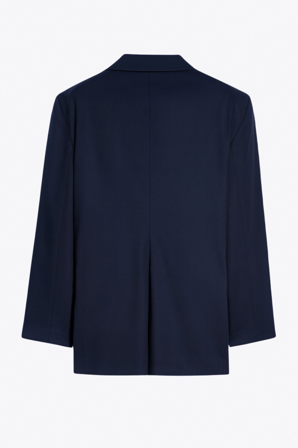 Blazer cruzado de fit oversized, con solapa y hombreras, manga larga, vivo frontal, bolsillos delanteros con cartera. Cierre frontal con cruce de botones.