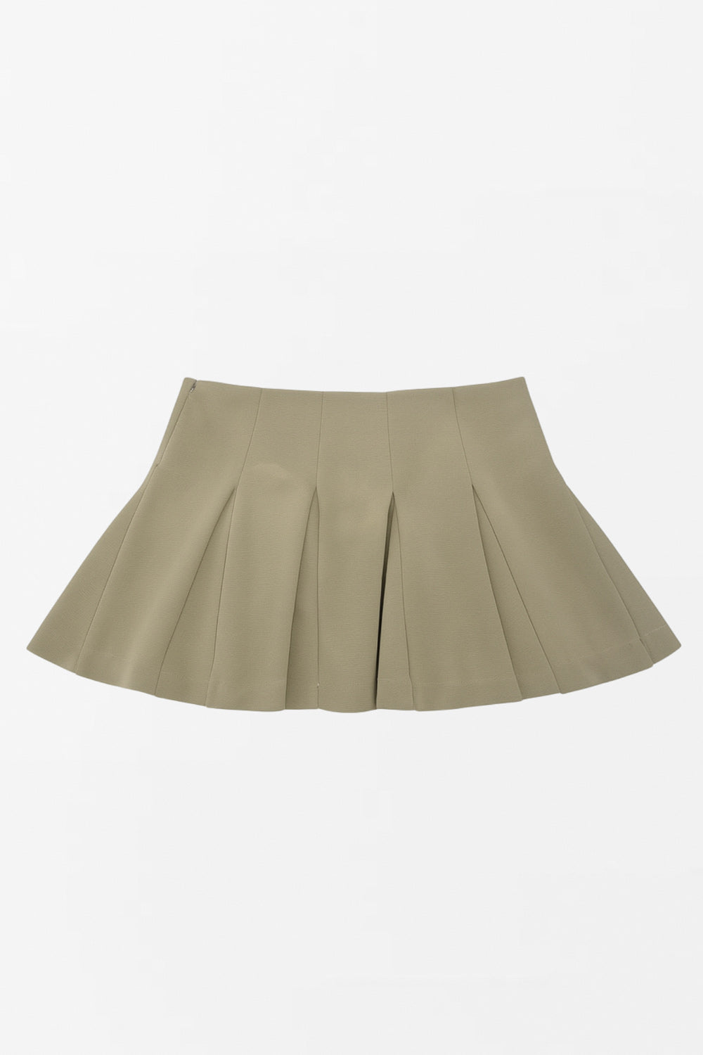 Falsa short corto de cintura alta, con pinzas y tableado en bajo. Cierre lateral con cremallera oculta.