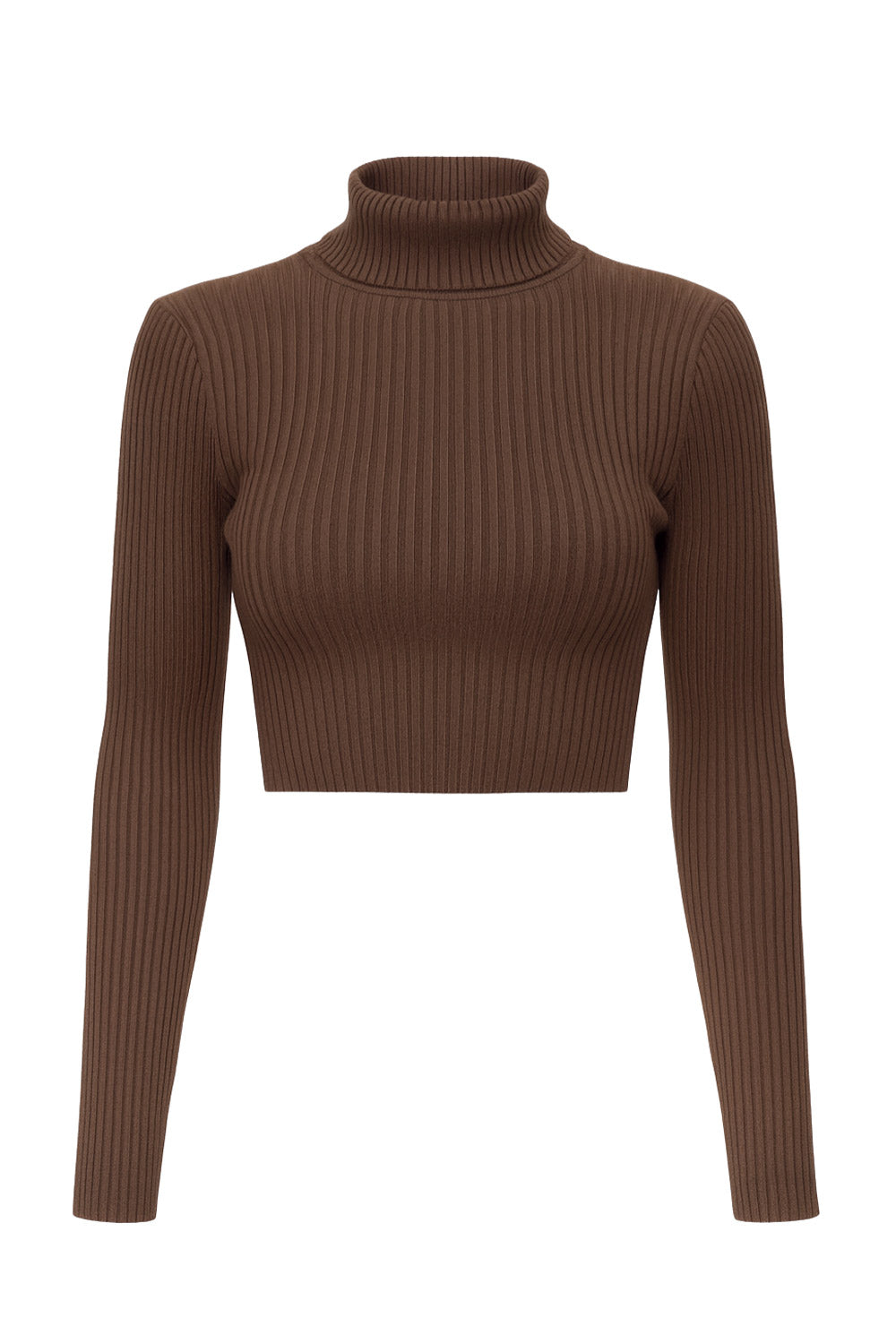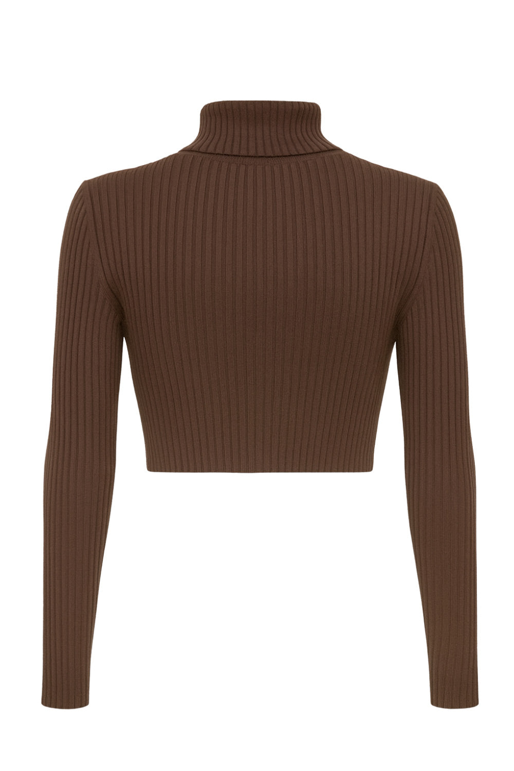 Jersey corto canalé de fit ajustado, cuello alto con doblez y manga larga.
