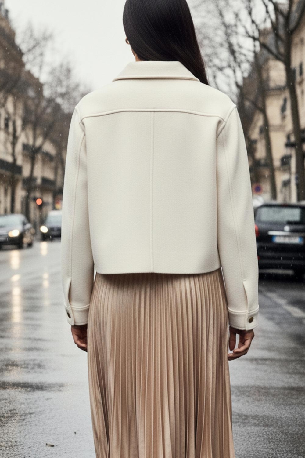 Chamarra corta recta con cuello botones