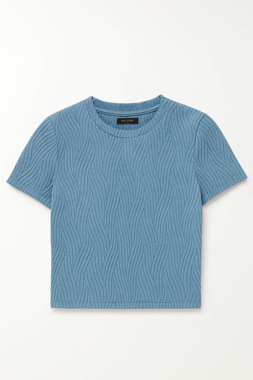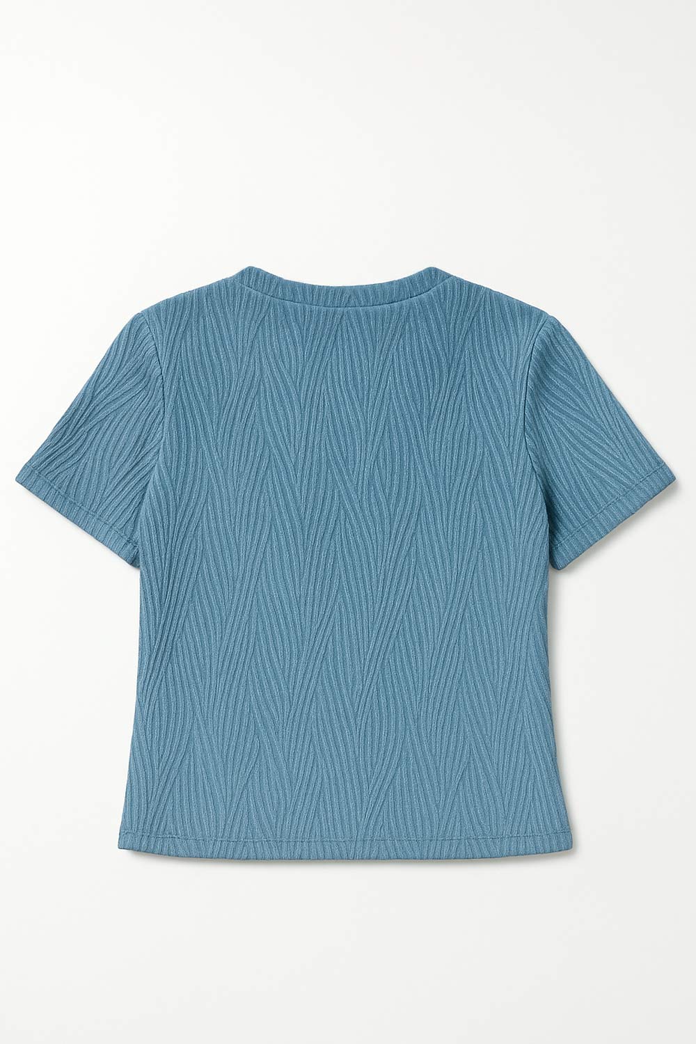 Camiseta de fit recto, manga corta, cuello redondo con rib en borde y detalle de textura en tejido.