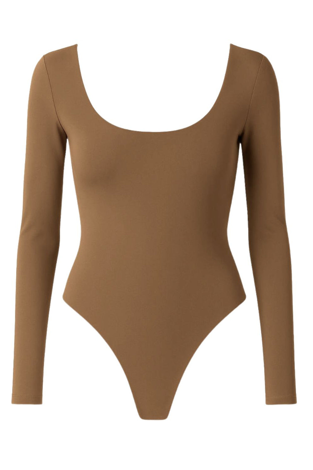 Body básico de fit ajustado, corte alto en pierna, escote cuadrado y manga larga.