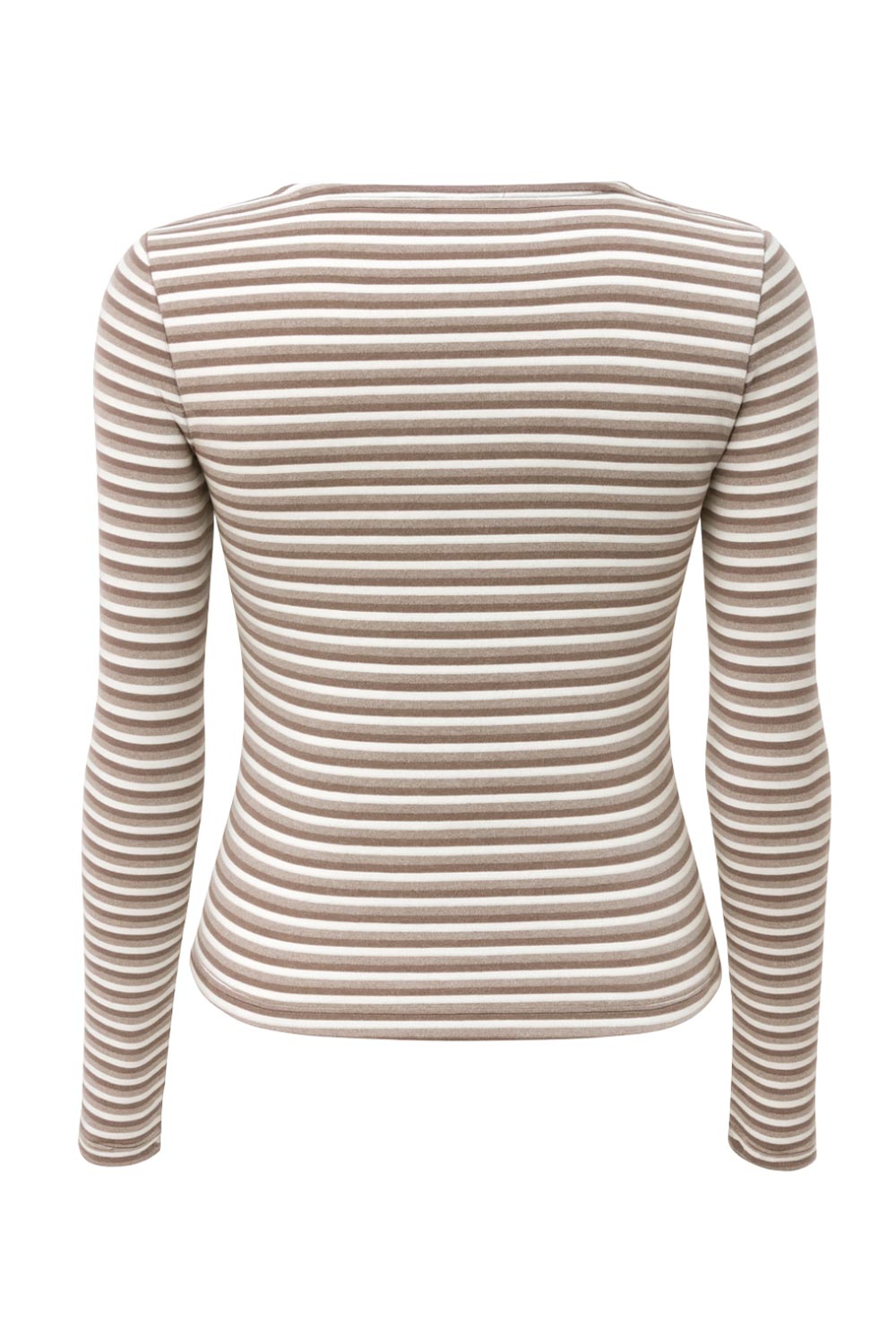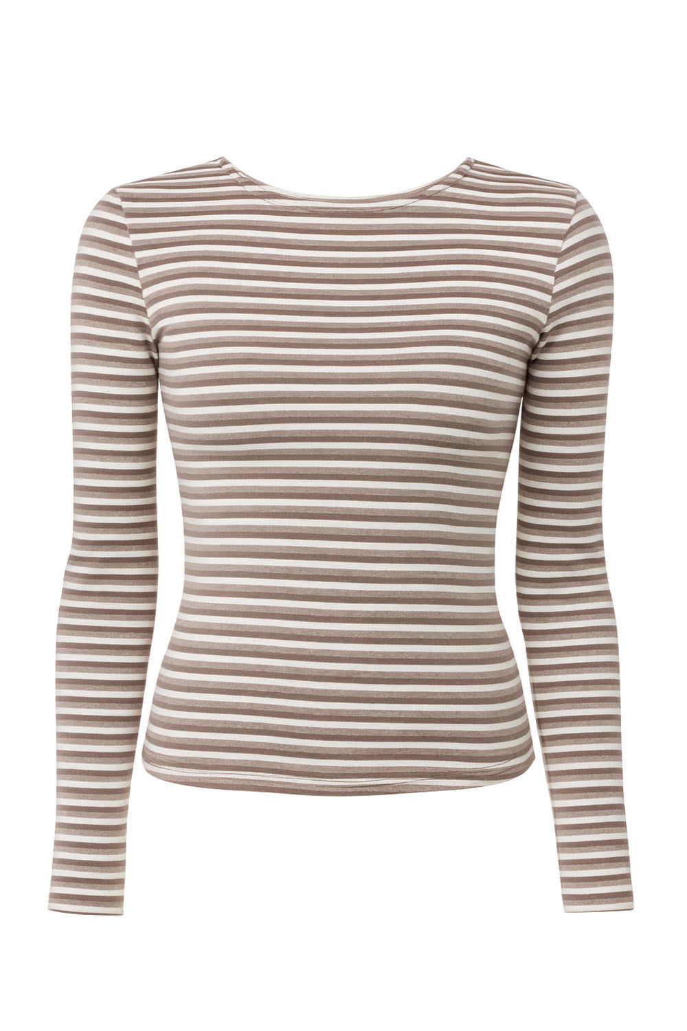 Camiseta básica de fit ajustado, manga larga, estampado rayas y cuello barco.