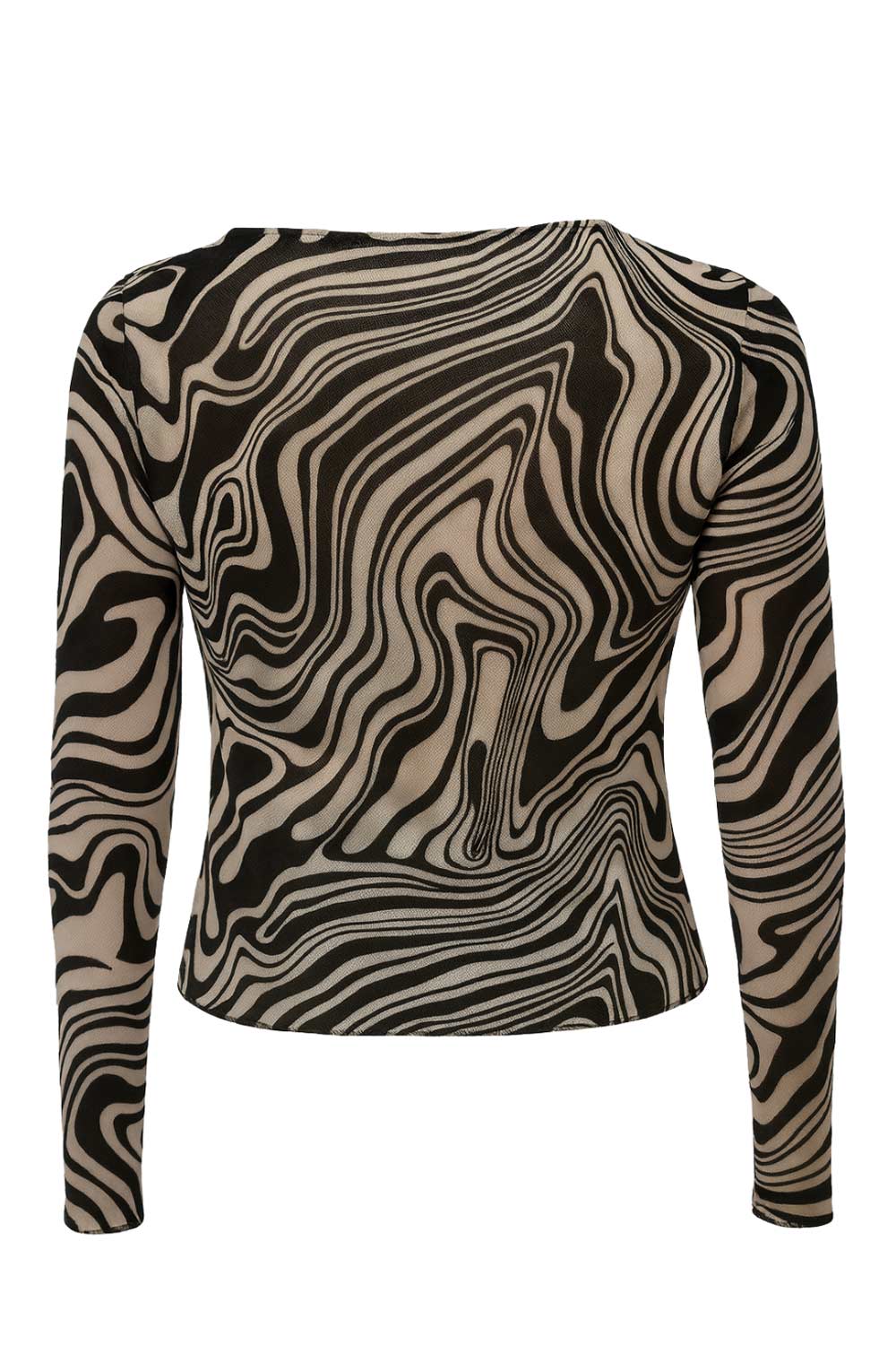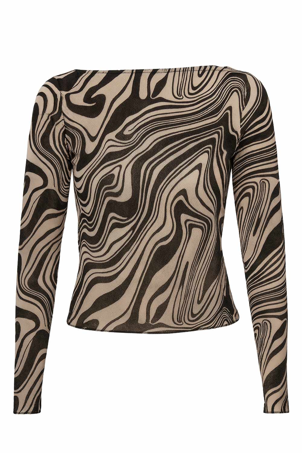 Top estampado de mesh, fit ajustado, manga larga y cuello barco.