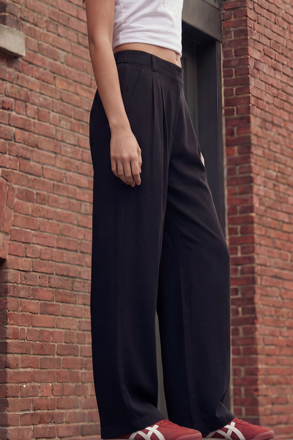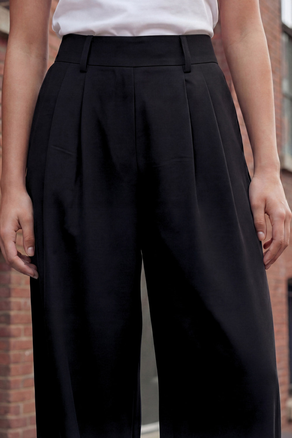 Pantalón fluido cintura alta wide leg con pinzas