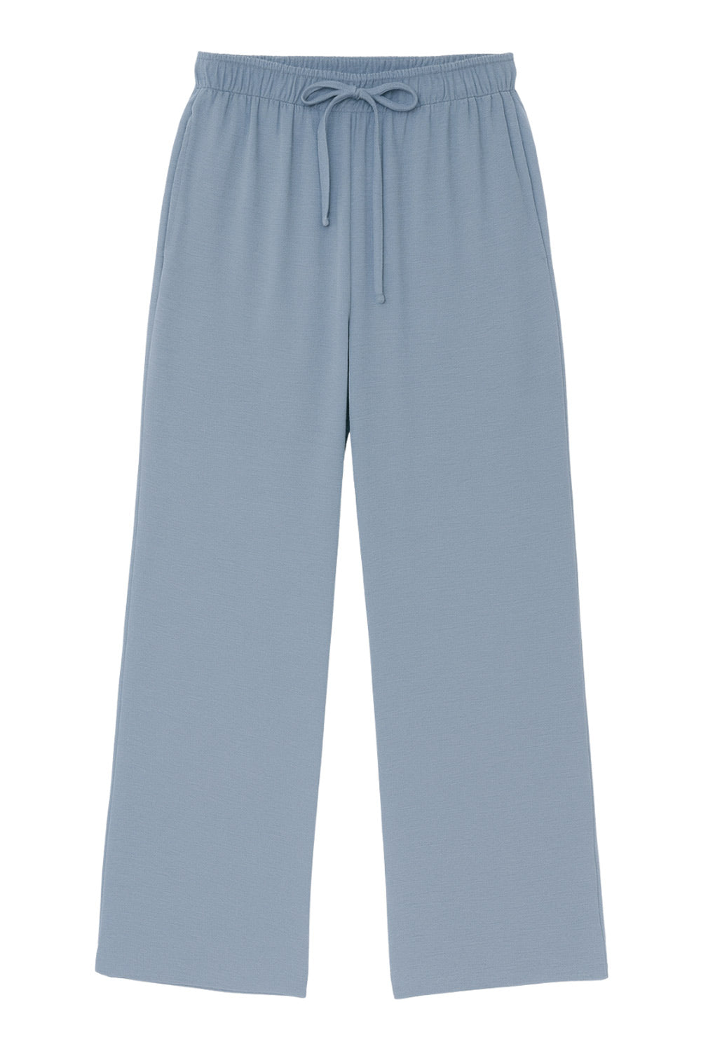 Pantalón fluido de fit recto, bolsillos delanteros, cintura media con pretina elástica y jareta frontal ajustable.