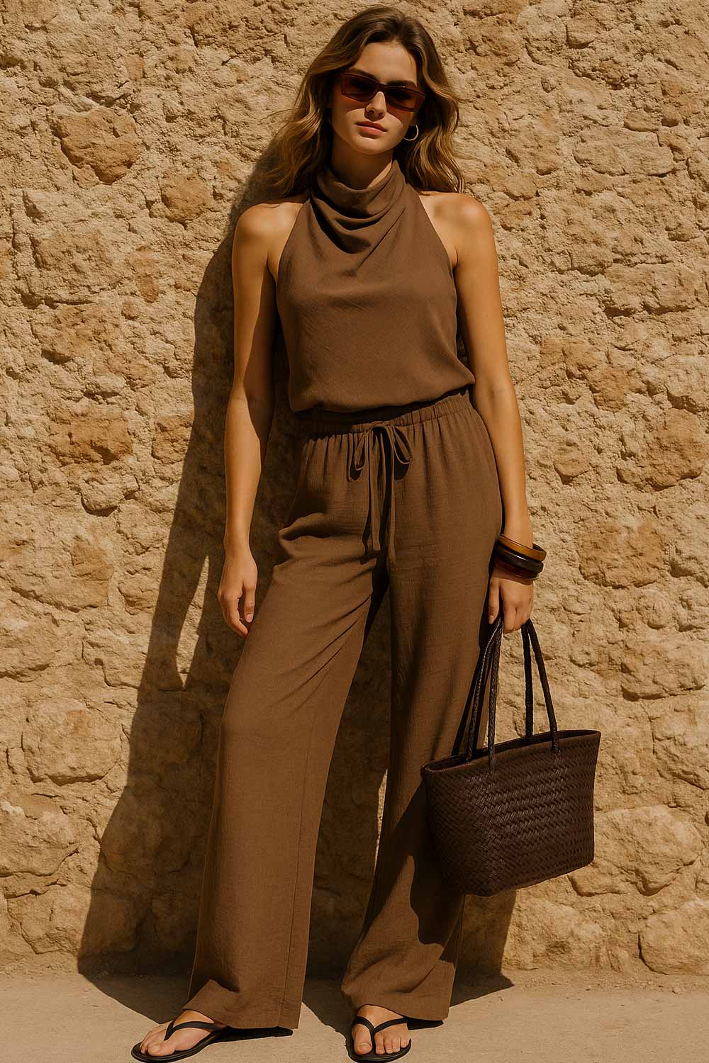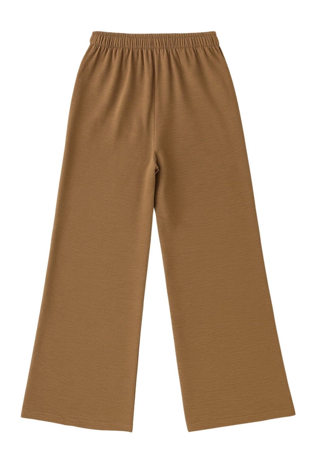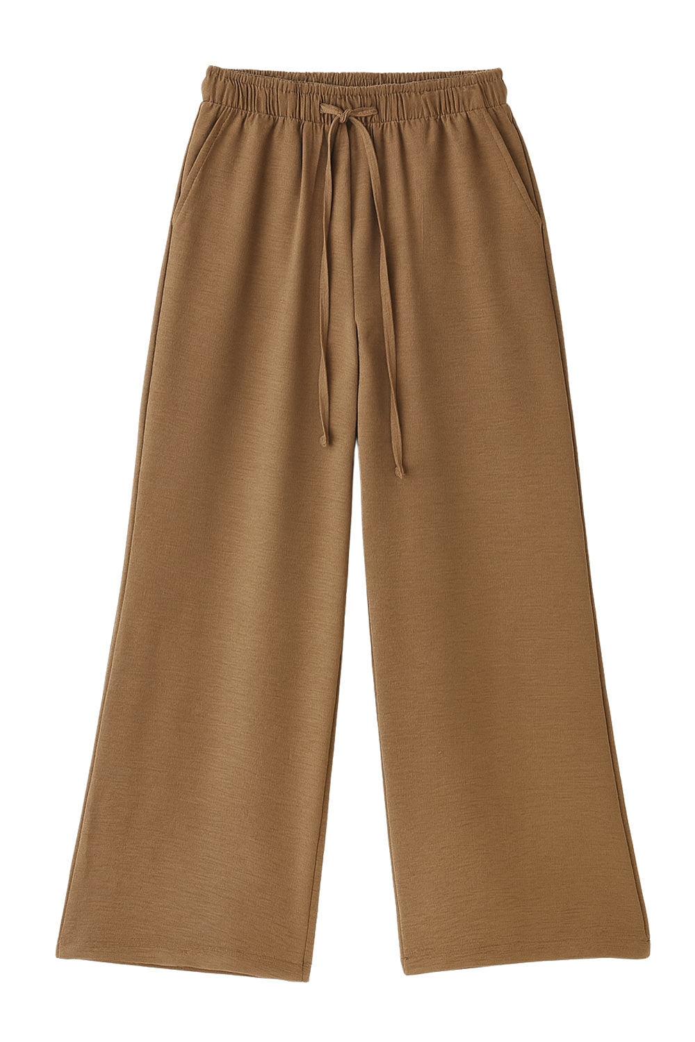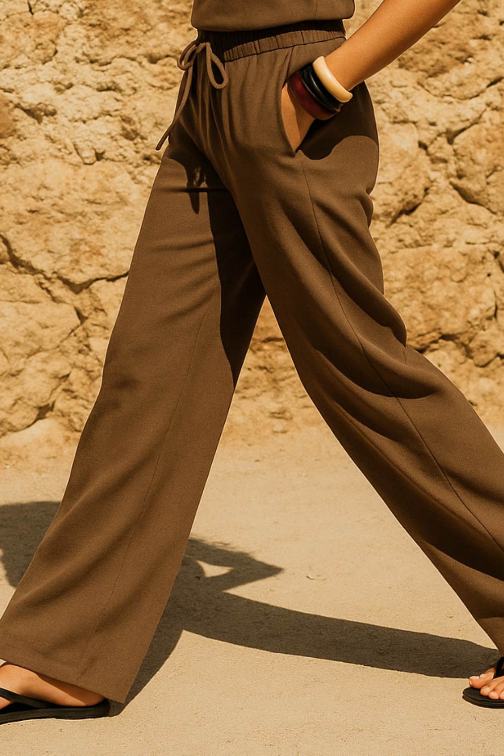 Pantalón fluido de fit recto, bolsillos delanteros, cintura media con pretina elástica y jareta frontal ajustable.
