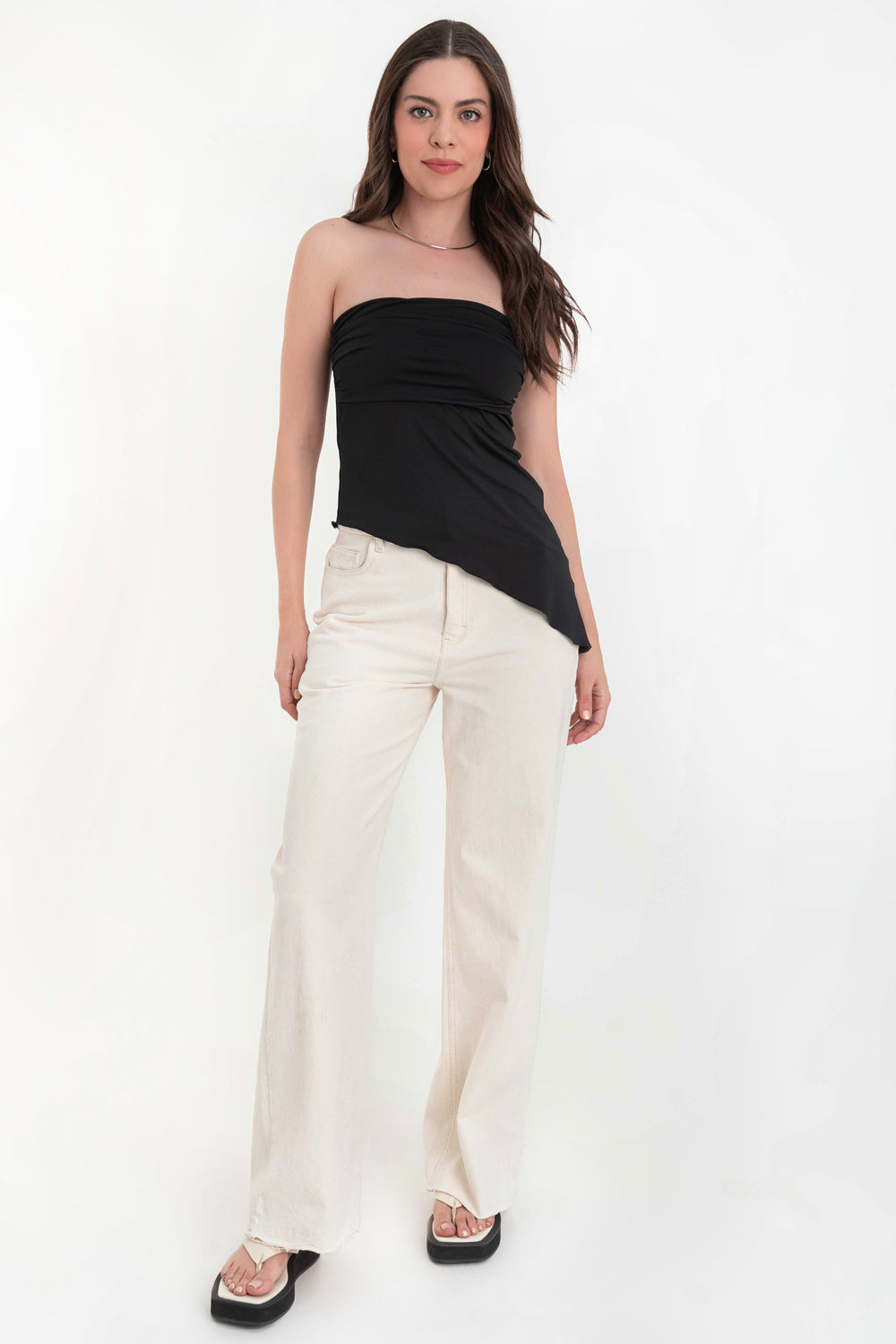 Top tubo con plisados bajo diagonal asimétrico