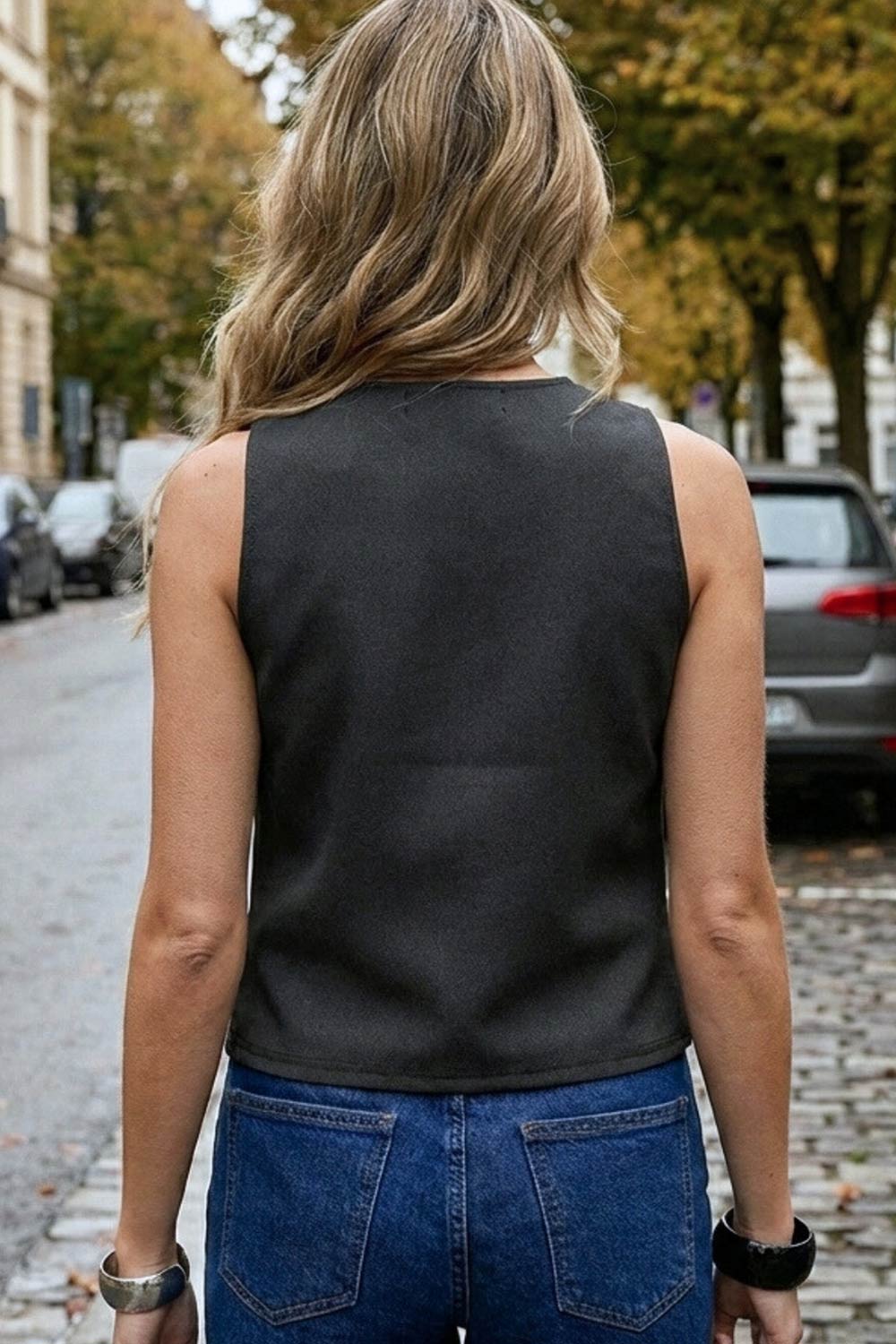 Chaleco corto fit recto con botones abertura