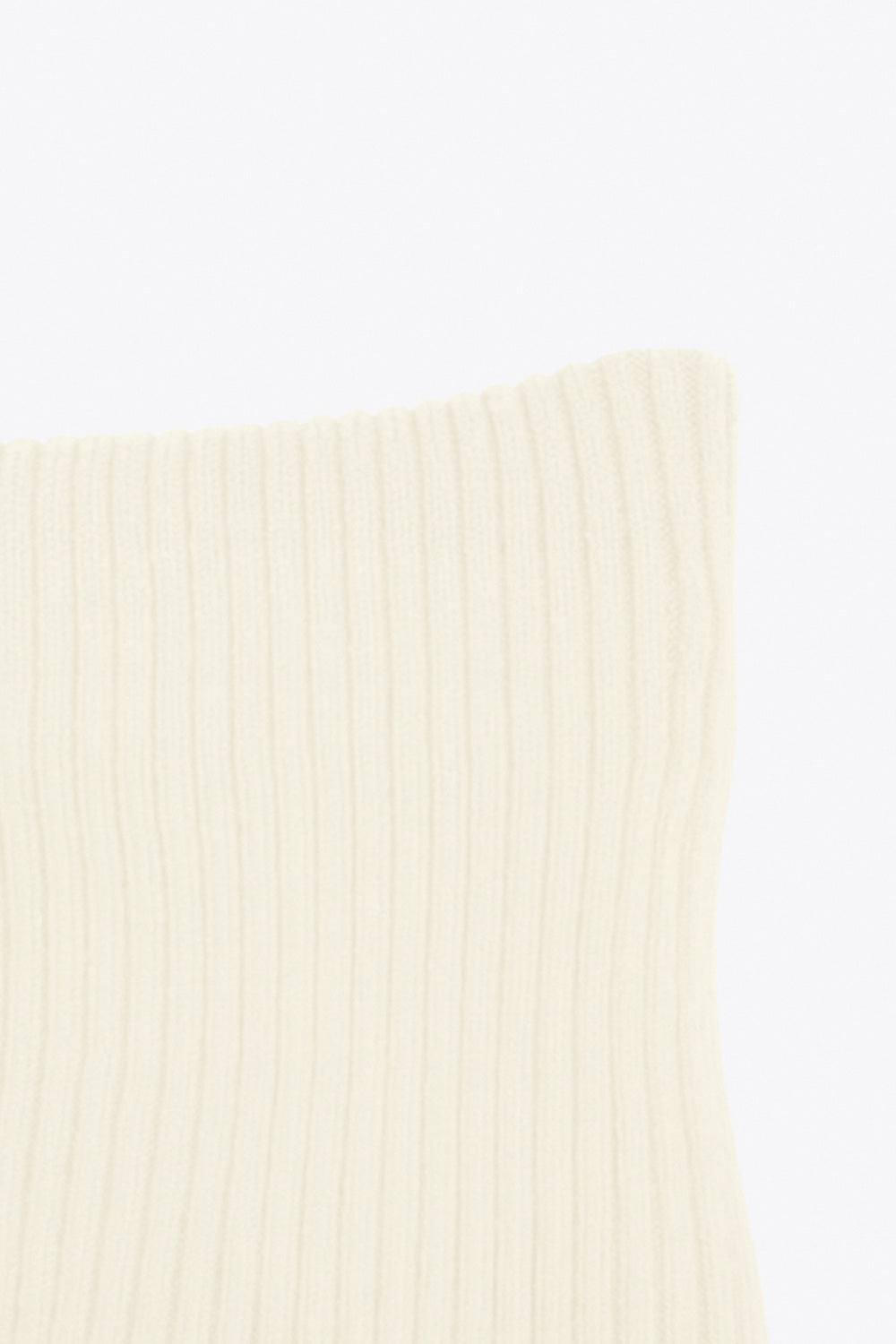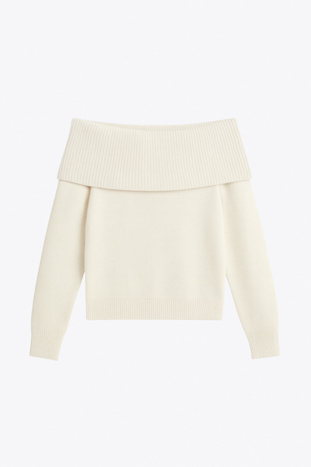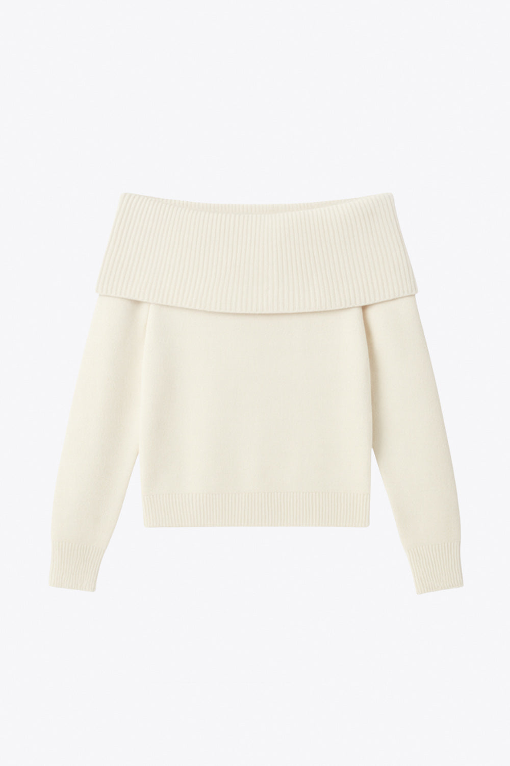 Jersey corto canalé de fit ajustado, hombros descubiertos con doblez en borde, manga larga y detalle de rib en bordes.