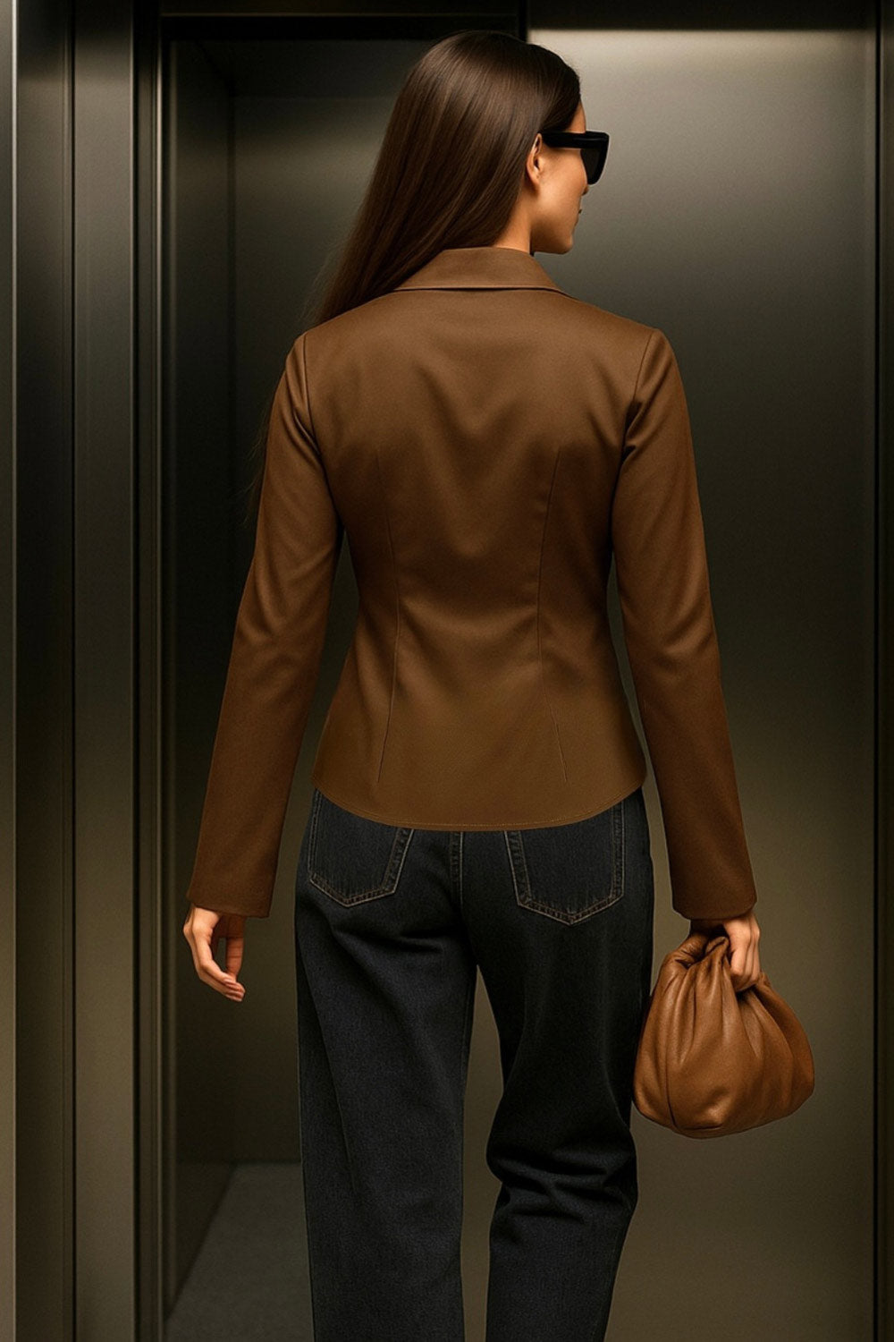 Camisa ajustada de cuello camisero, manga larga con amplitud y abertura en puños. Cierre frontal con hilera de botones.
