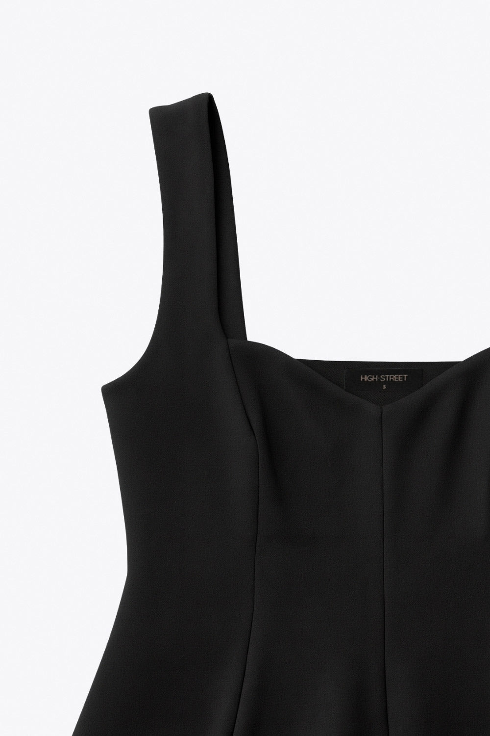 Top de tirantes, fit ajustado, escote corazón, costuras frontales y peplum con olanes en cintura.
