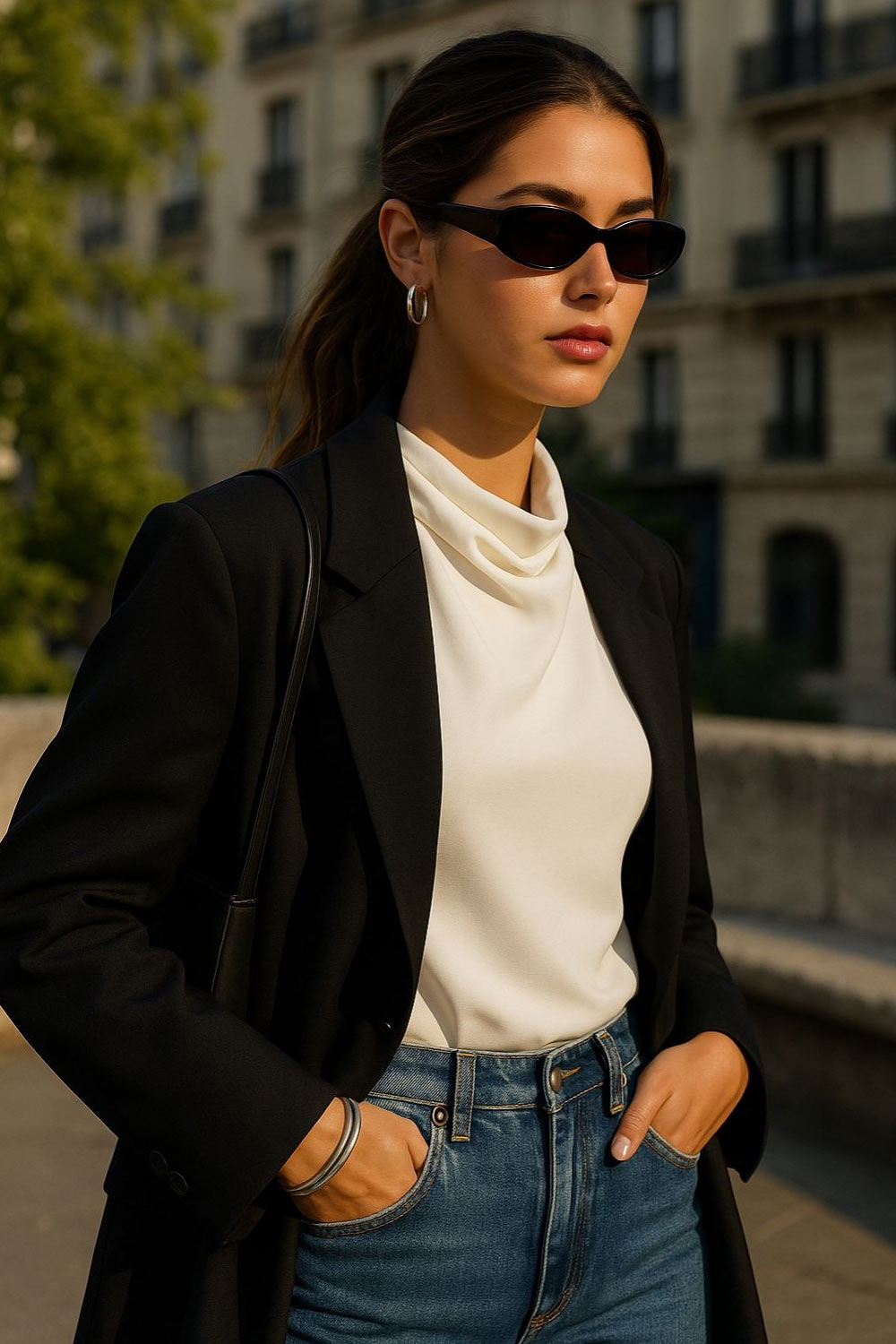 Blusa halter de cuello alto fluido, sin mangas, fit recto, escote en espalda y bajo asimétrico frontal. Cierre posterior con botón y ojal.